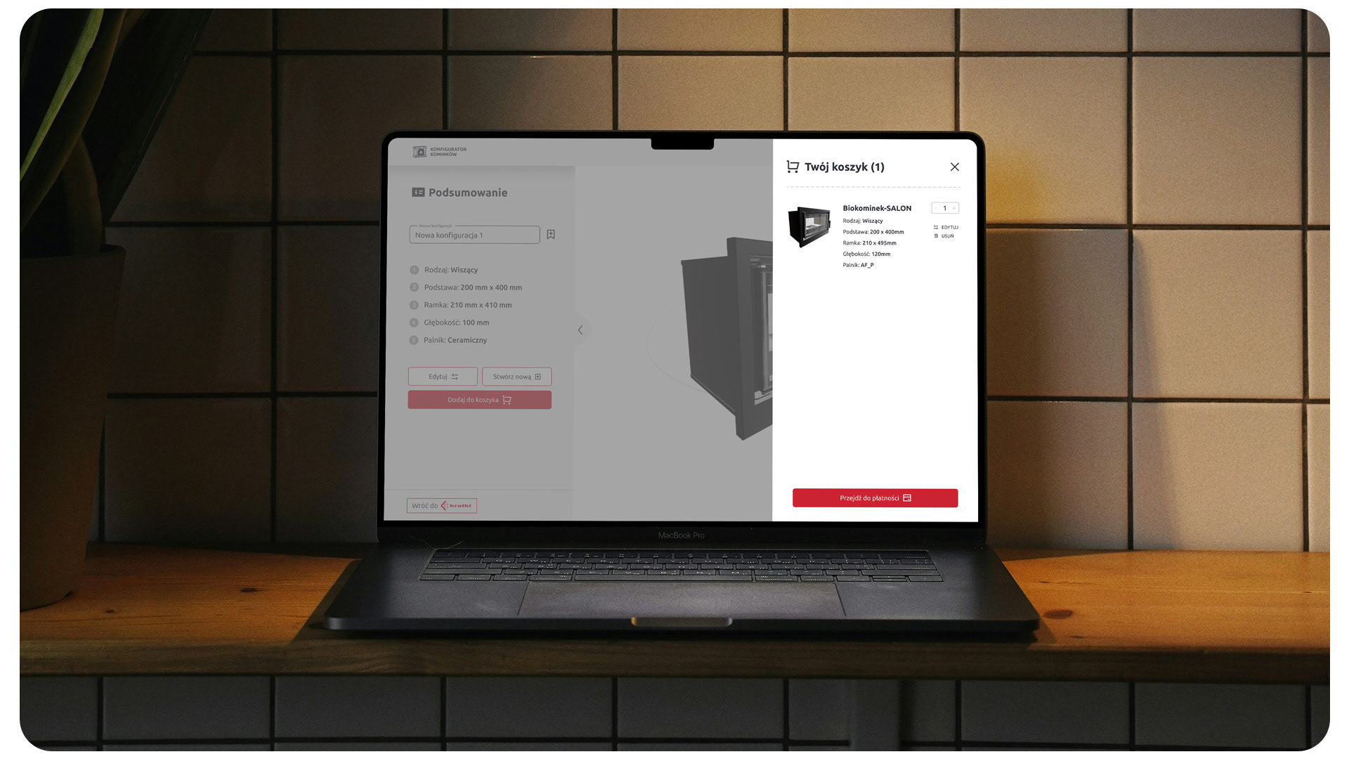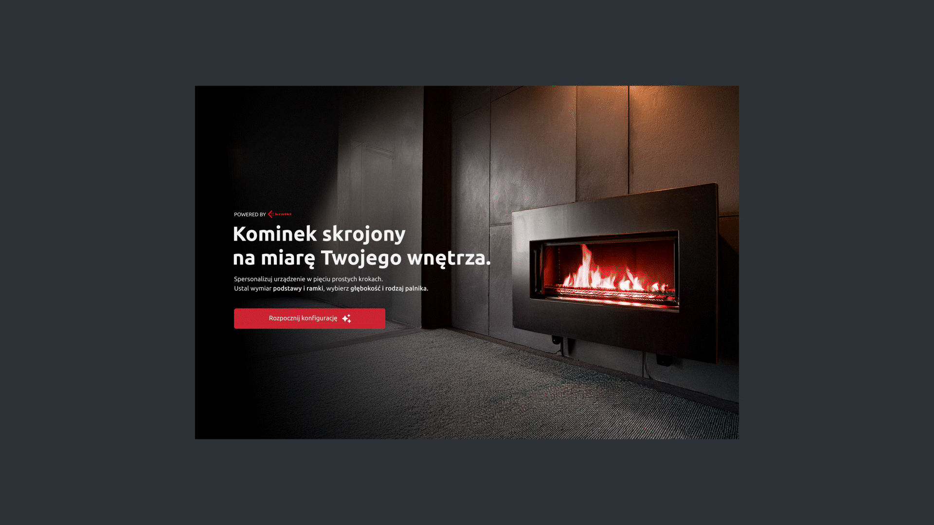 Celem projektu było stworzenie narzędzia, które umożliwia użytkownikowi intuicyjne komponowanie własnego kominka, poprzez dobór elementów, wariantów i dodatków, przy zachowaniu estetyki, funkcjonalności i spójności wizualnej marki.