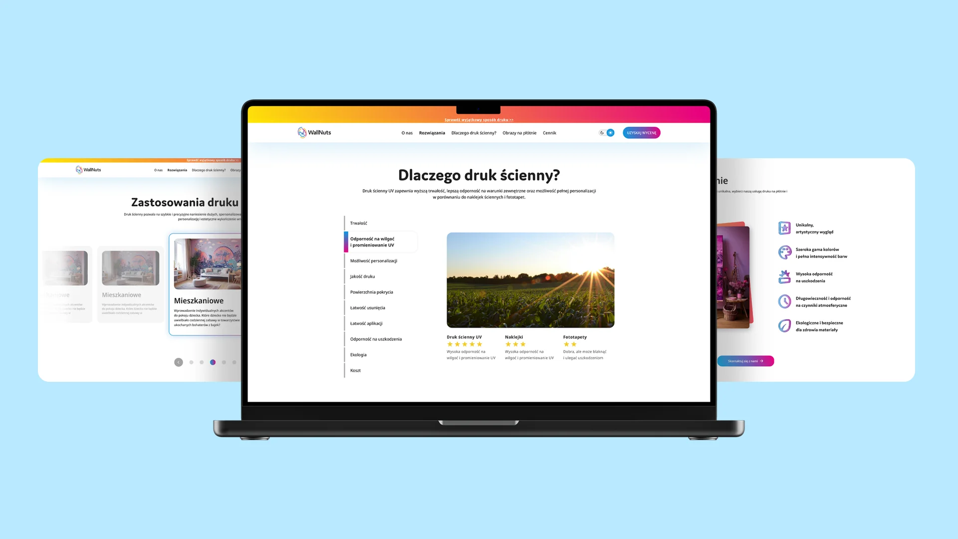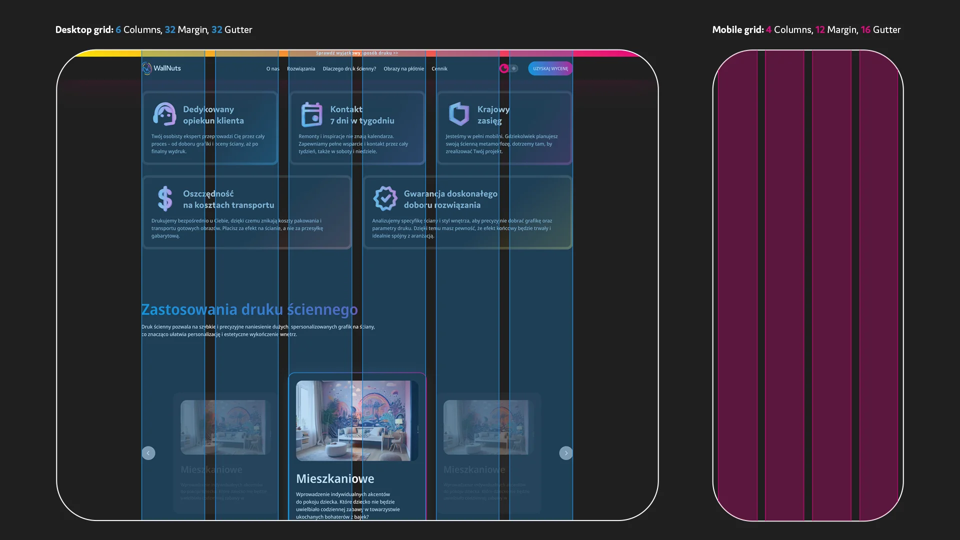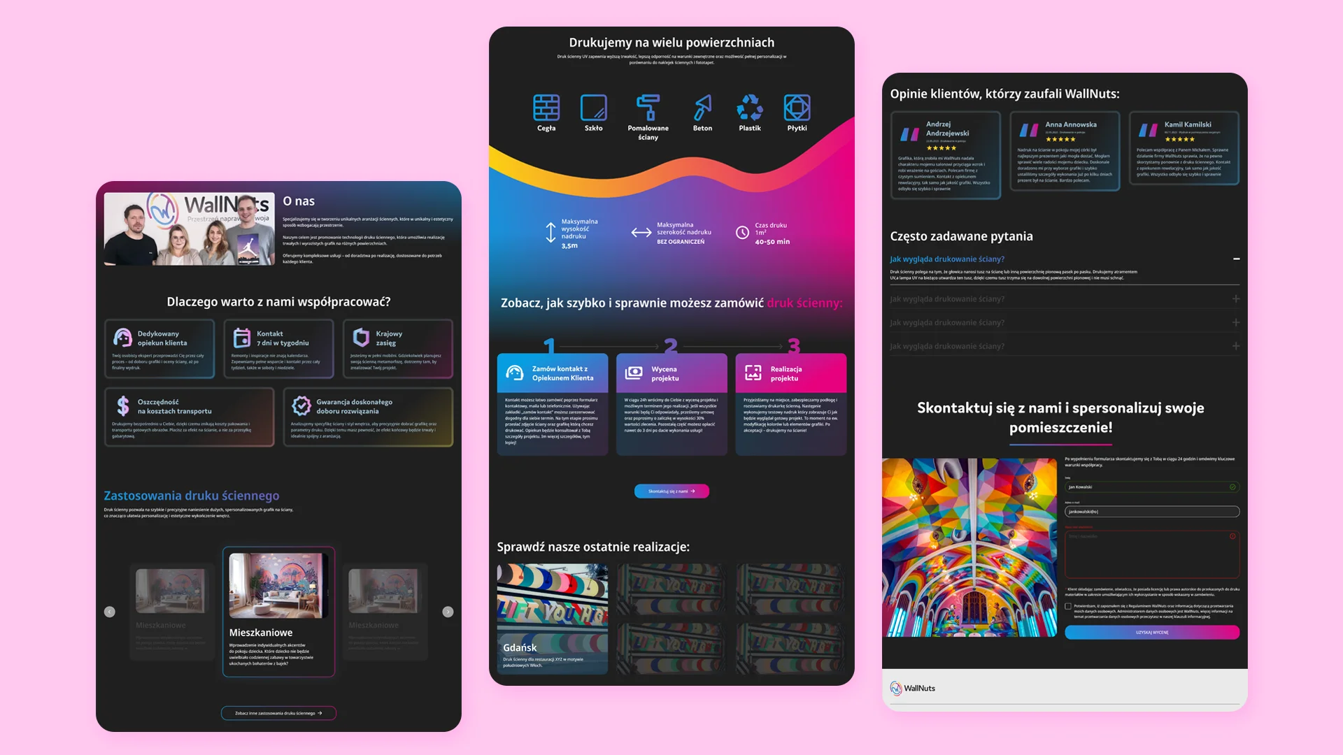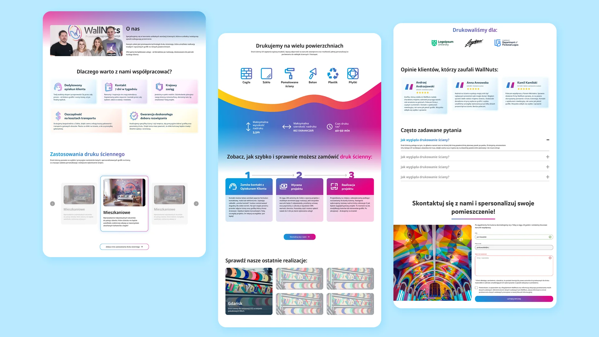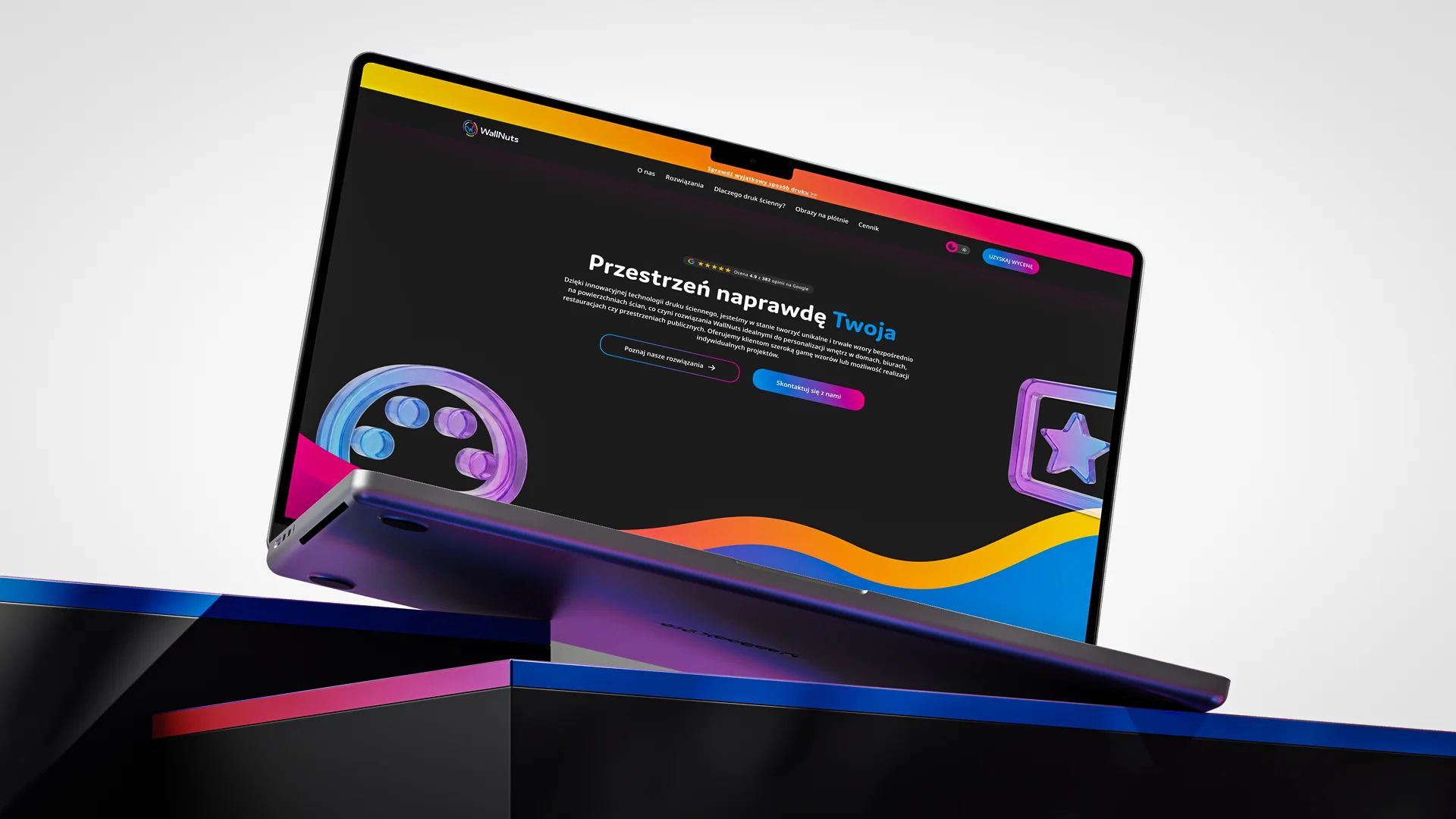 Analysis of the industrial wall-printing market revealed a gap for a modern, lifestyle-driven brand. WallNuts bridges this gap by blending CMYK-inspired precision with organic forms, turning technical services into a creative interior experience.
